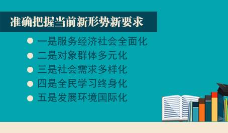 一是服务经济社会全面化。当今社会,教育国计民生的双重角色、今天明天的双重地位、引领支撑的双重作用、内政外交的双重功能日益凸显。全面建成小康社会进入决胜阶段,教育富民、教育移民、教育惠民重任在肩,必须竭尽全力让更多贫困学子通过接受良好教育脱贫致富、服务家乡、改变命运,阻断贫困代际传递;实施创新驱动发展战略,培育经济发展新动能,迫切需要强化科教融合发展,坚持科技教育经济三结合,全面提升高校创新能力,厚植创新驱动根基;增强“四个自信”,培养适应民族复兴、大国崛起的一代新人,需要教育“强基固本”,帮助广大青少年从小熟悉历史、了解国情,树立正确的历史观、民族观、国家观、文化观,增强做中国人的骨气和底气;中国越来越走向世界舞台的中央,传递中国声音、传播中华文化、展示中国形象,必须深化教育对外交流合作,加强人文交流,促进民心相通,在大国外交中发挥出教育的独特作用。