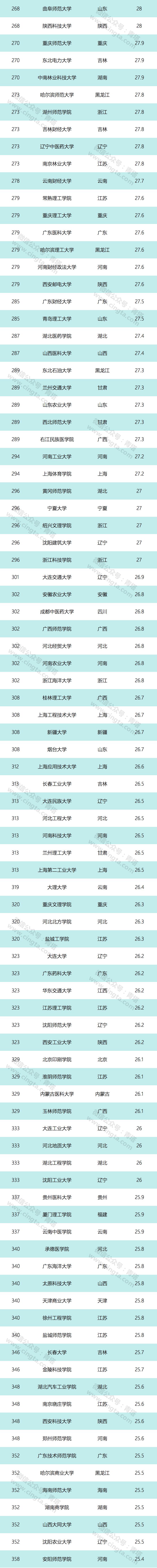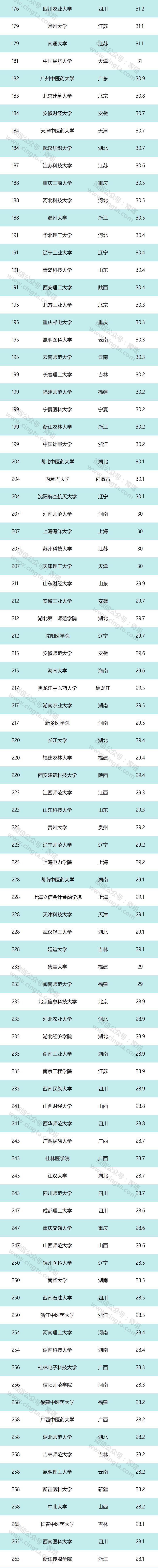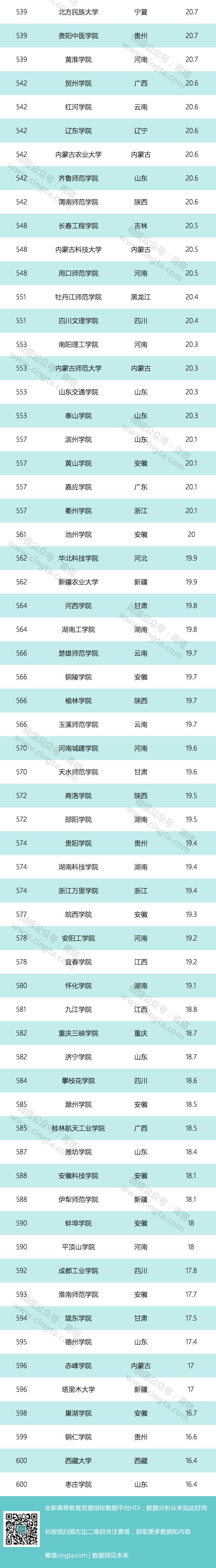 由于今年达到综合排名门槛标准的学校数量比去年有所增加,2018中国最好大学排名的发布名单也从去年的500所增加到今年的600所。这600所高校完整覆盖了我国内地所有31个省级行政区以及除军事、艺术以外的所有院校类型。
